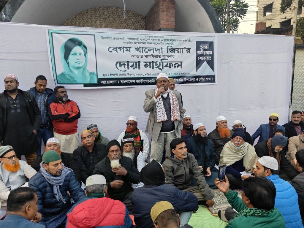 বাংলাদেশের স্বাধীনতা, সার্বভৌমত্ব ও গণতন্ত্র রক্ষায় অঙ্গীকারাবদ্ধ আপোষহীন নেত্রী দেশনেত্রী, বিএনপির চেয়ারপার্সন ও সাবেক প্রধানমন্ত্রী বেগম খালেদা জিয়ার রুহের মাগফিরাত কামনায় পাবনার ঈশ্বরদীতে মিলাদ ও দোয়া মাহফিল অনুষ্ঠিত হয়েছে।
